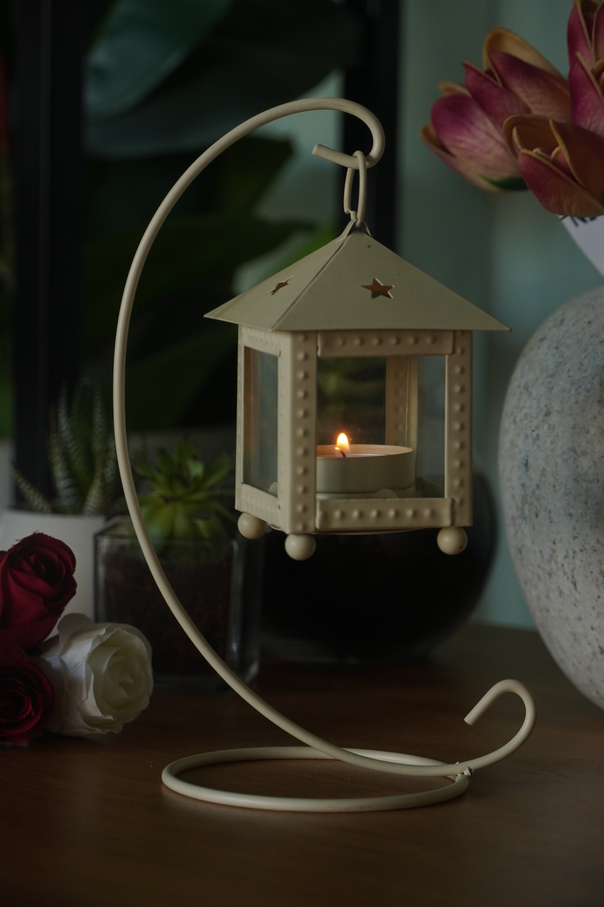 Valentine Gift Box with Chocolate, Mini Lantern Candle & Artificial Roses | Home Decor Gift Hamper