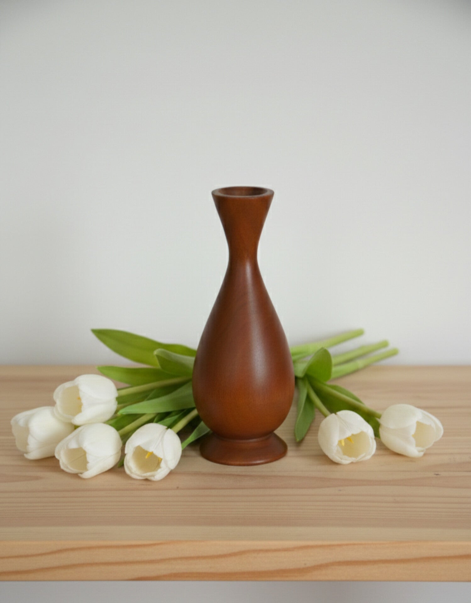 Designed to suit modern, minimalist, and Scandinavian interiors, this vase looks beautiful styled on its own or paired with dry stems, artificial flowers, or seasonal décor. The warm wood tone adds depth and softness, creating a calm and inviting feel in any space.